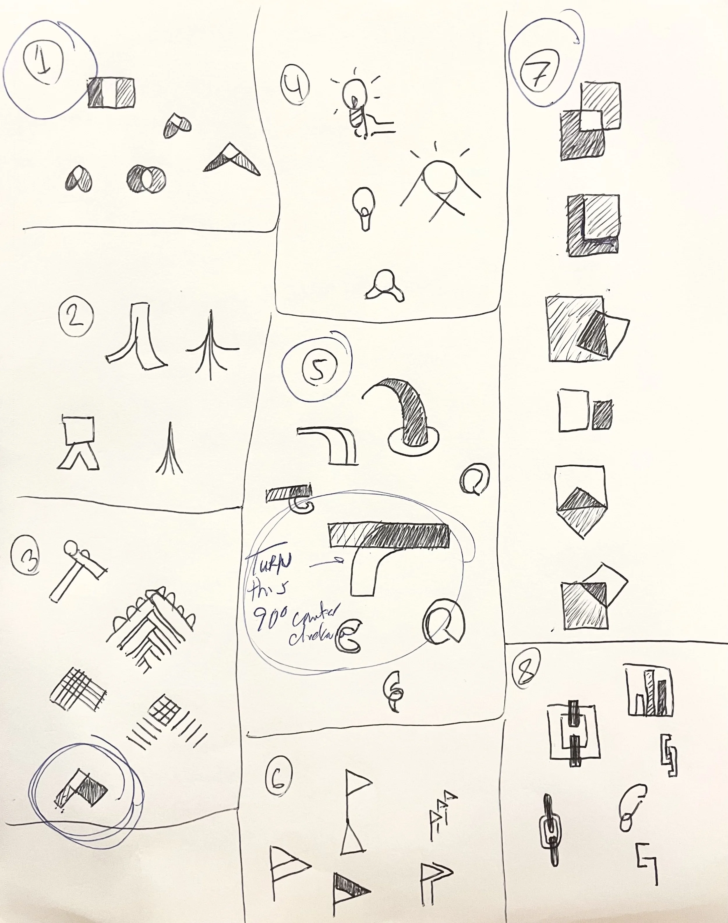 I began my logo creating process with research—understanding what the program wants to represent and demonstrate, looking at common associations with mentorship, and how I can build the two and combine into a greater final product. Different metaphors and iconography used to represent mentorship led me to different design concepts. Some of my sketches are shown below: